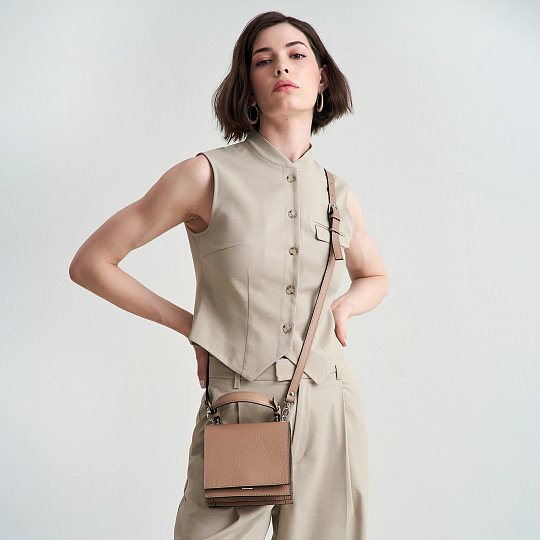 Сумка оснащена двумя отделениями, что позволяет удобно организовать все необходимые вещи. Вы сможете легко разместить в ней кошелек, телефон, косметичку и другие важные мелочи. Наличие карманов обеспечивает дополнительное удобство для хранения мелких предметов, которые всегда должны быть под рукой.