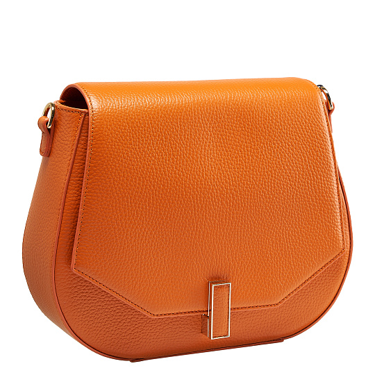 Классическая сумочка-седло. Аристократическая модель. Застёгивается на клапан с поворотной застежкой, которая оформлена кожей и выглядит как украшение. Дно укреплено дополнительной планкой, поэтому сумочка, благодаря своей жёсткой форме, стоит на поверхности уверенно. Внутри одно отделение, в котором размещены открытый и закрытый кармашки. Снаружи с обратной стороны есть карман на молнии, под ним вытеснен логотип. Полукруглая форма этого аксессуара выглядит очень женственно. А вертикаль регулируемого ремешка визуально делает фигуру стройнее.