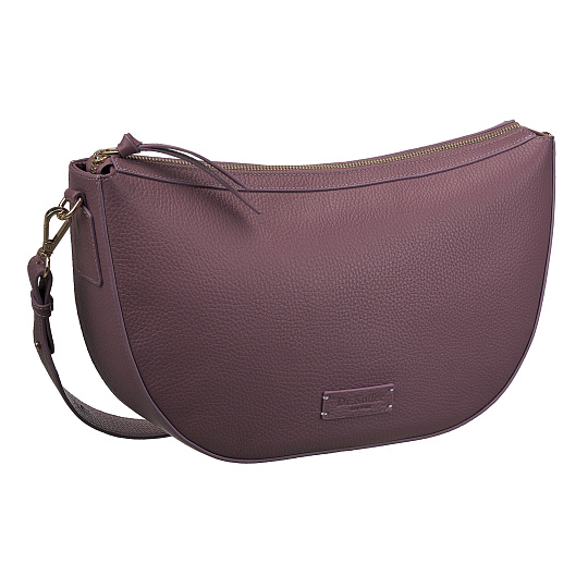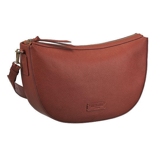 Вместительная сумка седло выполнена из натуральной кожи с ярко выраженной фактурой. Одно основное отделение на молнии внутри дополнено закрытым карманом. Снаружи, на задней стенке расположен небольшой карман для мелочей на молнии. В комплекте дополнительный кожаный плечевой ремень с регулировкой по длине.