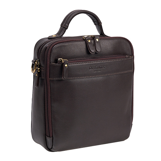 Настоящая мужская сумка. Проверенный временем и покупателями дизайн. Продуманная конструкция, способствующая тому, чтобы все было аккуратно разложено по местам и быстро вынималось. В зоне быстрого доступа – наружный карман на молнии с гнездами для мобильного телефона, визиток, ручек. Первое отделение – на боковых тканевых складках, открывается широко, в нем открытый карман. В основном отделении карман на молнии. Еще один карман на молнии – на обратной стороне. Ручка комфортная для ладони, съемный ремень на удобных карабинах.Максимальная длина плечевого ремня 150 см, ремень регулируется по длине.