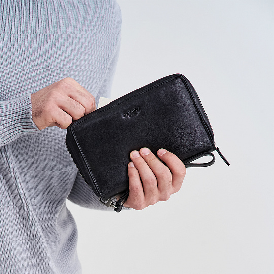 Барсетка оснащена четырьмя просторными отделениями, которые позволяют организовать ваши вещи с максимальным удобством. Внутри вы найдете 16 карманов, идеально подходящих для хранения визиток, кредитных карт и других мелочей, которые всегда должны быть под рукой. Закрывается на надежную молнию, обеспечивая безопасность ваших вещей.