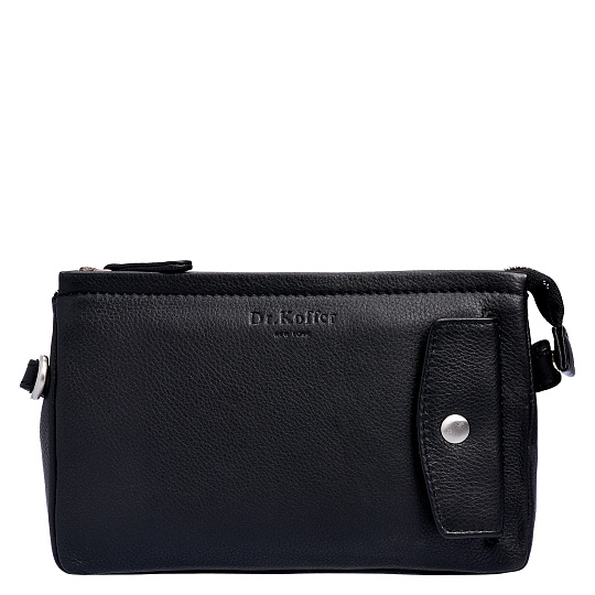 Интересная сумка-визитка, которая порадует любителя нестандартных, нескучных аксессуаров. Под клапаном на лицевой стороне остроумно прячется удобный вкладыш для пластиковых карточек. Съемная ручка-петля изящно крепится посредством стильного шнурка. Просторное основное отделение разделено тканевой перегородкой, в нем устроены потайной карман, гнездо для мобильного и кармашки для визитных карточек. На обратной стороне сумки карман на молнии.