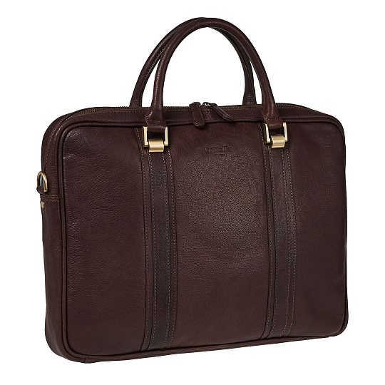 Аксессуар с очень выразительным оформлением, выдержанным в рамках деловой строгости. Привлекает внимание эффектная прострочка планок и элегантные держатели для ручек, на которых выгравирован логотип фирмы. Он также вытеснен на лицевой стороне сумки и представлен в качестве рисунка на подкладке. На оборотной стороне – большой карман на змейке. Ручки подвижные, удобные. Внутри основного отделения находится карман на змейке, 3 открытых кармана для смартфона, 3 держателя для ручек, 2 маленьких плоских открытых кармашка. Съемный регулируемый ремень крепится на карабинах, на его наплечнике нанесен логотип. К модели прилагается защитный чехол.