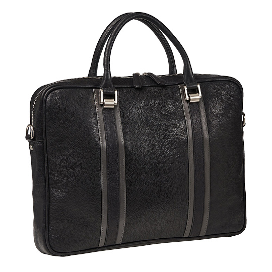 Аксессуар с очень выразительным оформлением, выдержанным в рамках деловой строгости. Привлекает внимание эффектная прострочка планок и элегантные держатели для ручек, на которых выгравирован логотип фирмы. Он также вытеснен на лицевой стороне сумки и представлен в качестве рисунка на подкладке. На оборотной стороне – большой карман на змейке. Ручки подвижные, удобные. Внутри основного отделения находится карман на змейке, 3 открытых кармана для смартфона, 3 держателя для ручек, 2 маленьких плоских открытых кармашка. Съемный регулируемый ремень крепится на карабинах, на его наплечнике нанесен логотип. К модели прилагается защитный чехол.