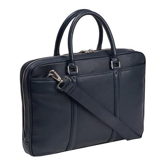 Замечательная деловая сумка – стильная, удобная, просторная. На лицевой и обратной сторонах симметричные наружные карманы на магнитной кнопке. Молния основного отделения вшита глубоко, благодаря чему сумка широко и удобно открывается.