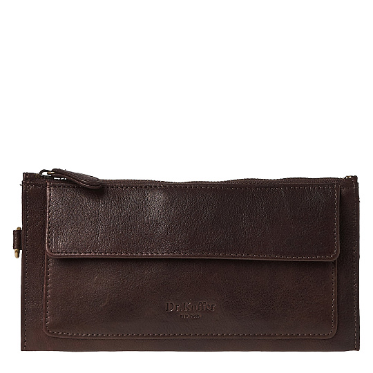 Визитка-дюймовочка. Небольшая аккуратная и стильная модель, которая удобно устраивается в руке и располагает всем необходимым, что подразумевается для сумок-визиток. Лицевой карман закрывается на кнопку. Внутри сумки между отделениями имеется открытый кожаный карман, он застегивается на хлястик с кнопкой. Также в основном отделении устроен блок для карточек и сетчатый карман под особо ценную карточку. Съемная ручка-петля выполнена изящно.