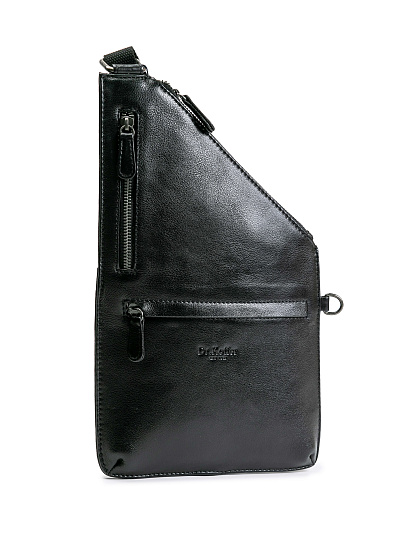 Стильная и необычная сумка через плечо из гладкой кожи. Регулируемый плечевой ремень позволяет носить ее, как замену портмоне или поясной сумки, для этого предусмотрены два крепления карабина ремня. Основное отделение небольшое, но вместительное закрывается на молнию. Несмотря на компактный размер у сумки есть 2 кармана на молнии на лицевой стороне и один наружный карман на молнии на обратной.