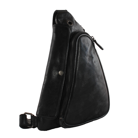 Рюкзак на одной лямке удобная альтернатива поясной сумке. Модель имеет асимметричную форму. Основное отделение закрывается клапаном и молнией, дополнительно может быть расширено на 3 сантиметра. На наружной стороне расположен дополнительный карман на молнии. Ремень продублирован тканью, чтобы не скользить на одежде, легко регулируется по длине позволяя настраивать рюкзак под себя. Стильный рюкзак на одной лямке изготовлен из натуральной кожи растительного дубления дополнительно обработанной по технологии Wash Leather. Она применяется уже после изготовления модели. Воздействие горячей водой и водяным паром позволяет добиться уникального для каждого изделия окраса и структуры кожи. Подклад  сделан из специального хлопка, который не только не повреждается под воздействием влаги и температуры, а становится только лучше и прочнее. К сумке прилагается фирменный мешок для хранения.