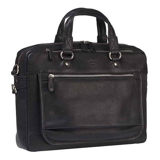 Обаятельная модель, изящно сочетающая свое деловое предназначение с нестандартной симпатичной и современной внешностью. Оригинальный наружный карман с гнездами для визиток и петлями для ручек. Над ним – молния еще одного кармана. Третий наружный карман – на обратной стороне модели. В основном отделении – особая секция со смягченными стенками для ноутбука, она закрывается на липучку, два сетчатых кармана и большой карман на молнии. Снизу сумки – изящные, нестандартной формы упоры. Ручки удобные, приятно похрустывающие кожей.Максимальная длина плечевого ремня 150 см, ремень регулируется по длине.
