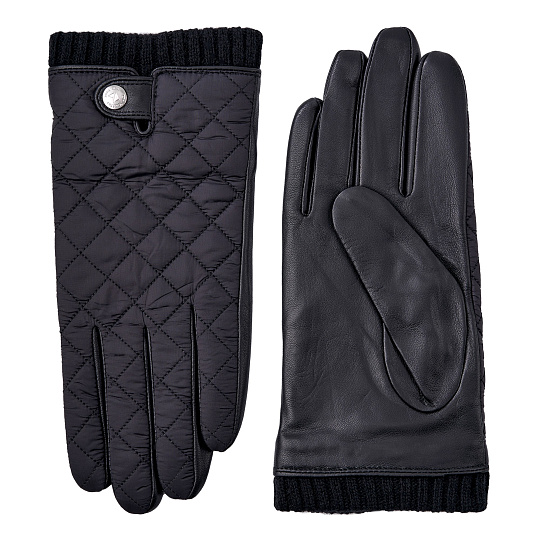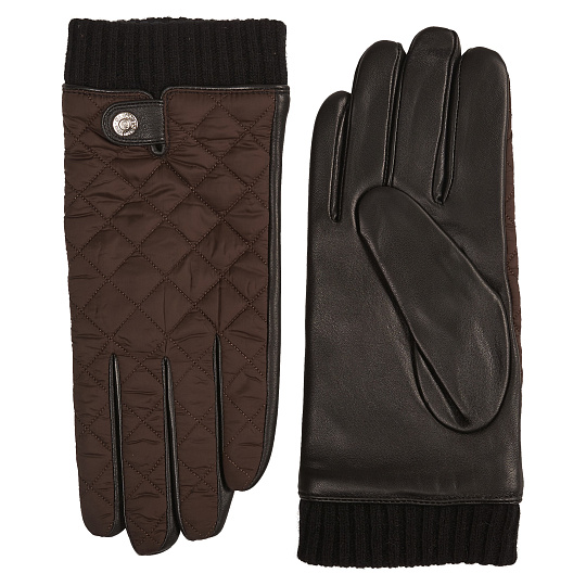 Простеганный верх, кожаные ладони, вязаные манжеты, шерстяная трикотажная подкладка – при таком оснащении можно спокойно встречать непогоду и холода. На кожаном хлястике - кнопка с логотипом компании. Благородное сочетание умеренного цвета и черной кожи. Она обработана по технологии тачскрин, что позволяет пользоваться гаджетами с сенсорными экранами, не снимая перчаток. Продаются в фирменной коробке.