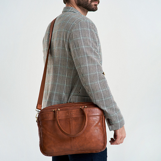 Отличная современная замена портфеля. Стильная, строгая по дизайну, продуманно сконструированная модель. Симметричные наружные карманы на лицевой и обратной сторонах закрываются на скрытые магниты. В основном отделении во всю ширину его устроена пропоролоненная секция для планшетника, она закрывается на кожаный хлястик с липучкой. На противоположной стороне – большой карман на молнии, открытый карман для смартфона, блок для карточек-визиток и две кожаные петли для ручек-карандашей. У модели удобные, подвижные ручки. Максимальная длина плечевого ремня 150 см, ремень регулируется по длине.