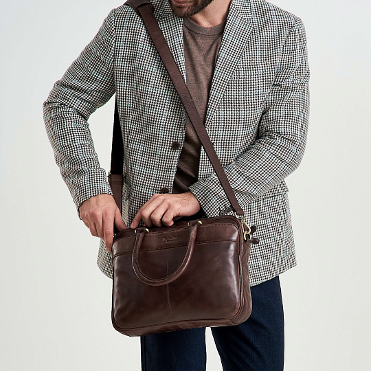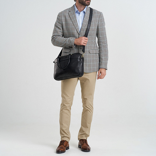 Отличная современная замена портфеля. Стильная, строгая по дизайну, продуманно сконструированная модель. Симметричные наружные карманы на лицевой и обратной сторонах закрываются на скрытые магниты. В основном отделении во всю ширину его устроена пропоролоненная секция для планшетника, она закрывается на кожаный хлястик с липучкой. На противоположной стороне – большой карман на молнии, открытый карман для смартфона, блок для карточек-визиток и две кожаные петли для ручек-карандашей. У модели удобные, подвижные ручки. Максимальная длина плечевого ремня 150 см, ремень регулируется по длине.