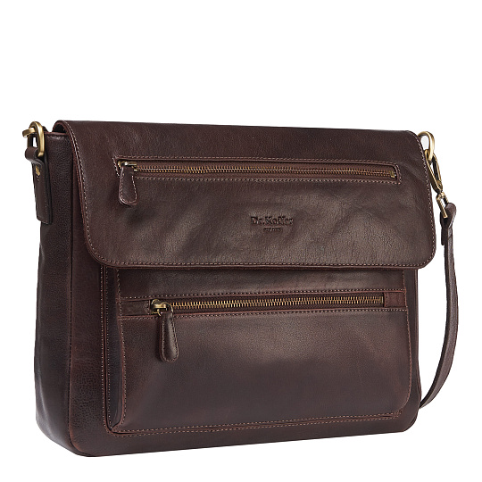 Стильная, устойчивая сумка с удобным набором наружных карманов – всего их пять, и вспомогательной ручкой. Вспомогательная ручка-хлястик расположена на обратной стороне и удобна при манипуляциях с сумкой. Молнии наружных карманов эффектно украшают модель, а сами карманы позволяют рационально использовать все пространство сумки. Пятый карман располагается под клапаном, он открытый, с гнездами для смартфона, карточек-визиток и кожаными петельками для ручек. Основное отделение надежно закрывается на молнию, в нем устроена пропоролоненная секция для планшетника, фиксируемая липучкой, и карман на молнии для денег и документов. Максимальная длина плечевого ремня 150 см, ремень регулируется по длине.