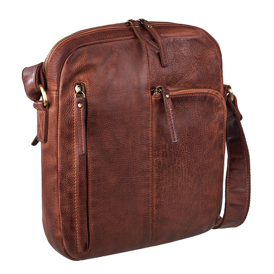Удобная сумка в винтажном стиле. Основное отделение закрывает на змейку, внутри три открытых кармана. Подкладка – натуральный хлопок. Длинный несъёмный регулируемый ремень снабжён наплечником. Корпус украшен нашивкой с тисненым логотипом в классическом стиле. Лаконичный дизайн делает даже металлические детали практически незаметными. Это позволяет подчеркнуть особенное качество основного материала – варёной кожи, прочной, легкой, мягкой и гладкой на ощупь, с эффектом потертости. Она производится по технологии растительного дубления и окрашивается вручную. Использование при пошиве только натуральных материалов позволяет применять обработку всего изделия целиком уже после пошива. Каждая сумка получает индивидуальную окраску, что делает все экземпляры уникальными. Изделия из этой кожи очень популярны в Западной Европе, где выбирают аксессуары, которые свидетельствуют о хорошем вкусе и об умении отличать важное от второстепенного. К сумке прилагается фирменный мешок для хранения.