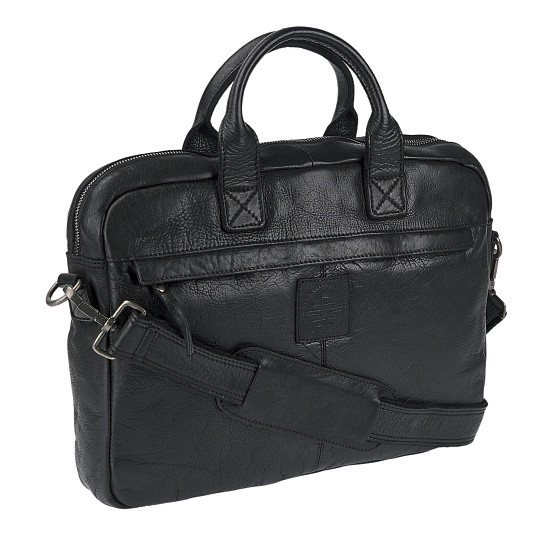 Основное отделение сумки для документов вмещает ноутбук, папку А4, ежедневник, портмоне и прочие вещи. Также есть три кармана на молнии: два - снаружи, один - с тыльной стороны аксессуара.