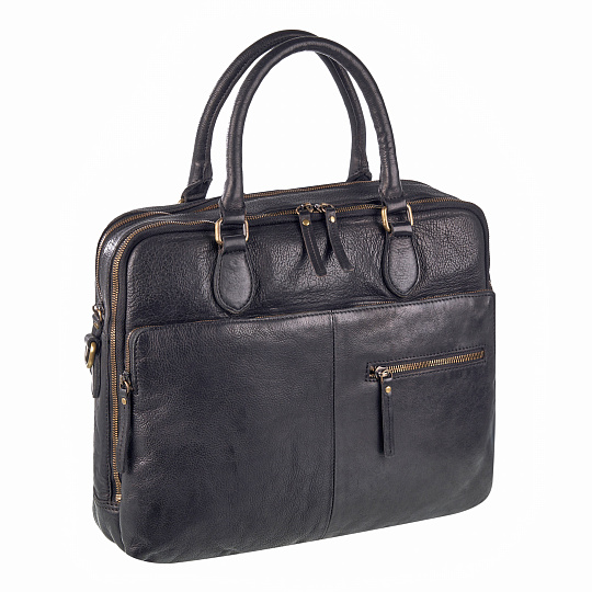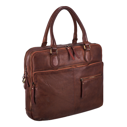 Сумка в винтажном стиле с двумя отделениями, дополнительная секция для ноутбука с мягкой стенкой фиксируется на липучке. Три наружных кармана закрываются на молнии, внутри одного из них расположены четыре открытых кармашка для карточек или пропусков. Удобные плотные ручки, съёмный ремень на карабинах регулируется по длине. Подкладка хлопковая. К сумке прилагается фирменный мешок для хранения. Главный акцент модели – кожа с винтажной окраской. Прочная, на ощупь гладкая и мягкая, сохранившая фактуру, имеющая индивидуальную окраску, она выделана по технологии растительного дубления с обработкой уже полностью отшитого изделия. Аксессуары из такой варёной кожи очень популярны у европейских покупателей, которые любят выбирать крепкие вещи с характером, выразительные, но не бросающиеся в глаза.
