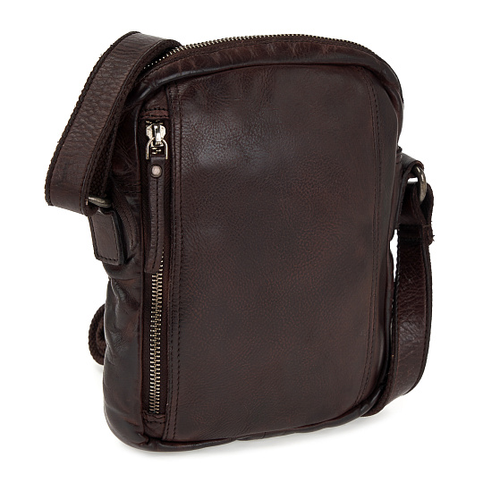 Компактная сумка через плечо с винтажным эффектом, станет стильным дополнением любого образа. Модель изготовлена из высококачественной кожи растительного дубления, подвергнутой специальной обработке по технологии Wash Leather Kansas. Эта технология применяется уже после изготовления модели. Воздействие горячей водой и водяным паром позволяет добиться неповторимого для каждого изделия окраса кожи, придавая ему уникальный вид. Фурнитура не повреждается под воздействием влаги и температуры, а становится только лучше и прочнее. Модель закрывается на молнию, внутри находится одно отделение. На лицевой стороне модели расположен карман на молнии. На тыльной стороне также находится карман на молнии, чтобы все самые нужные вещи всегда были под рукой. Длина плечевого ремня регулируется.