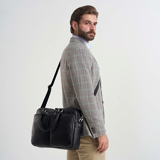 Эта кожаная сумка для документов отличается высоким качеством исполнения и долговечностью, что делает её идеальным выбором для ежедневного использования. Черный цвет придаёт изделию классический и строгий вид, который будет гармонично сочетаться с любым деловым гардеробом.