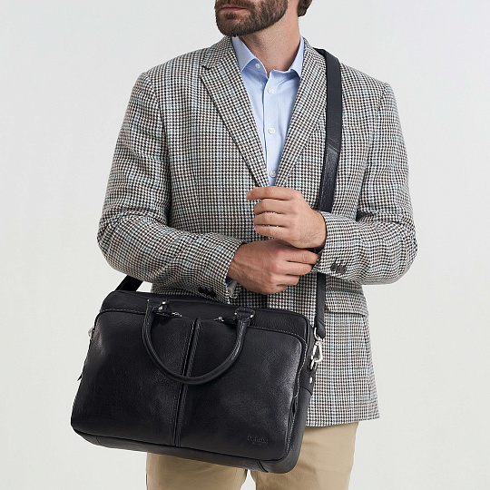 Эта кожаная сумка идеально подходит для деловых встреч, командировок и повседневного использования. Ее классический черный цвет и изысканный внешний вид подчеркнут ваш безупречный стиль и статус. Сумка Dr. Koffer станет надежным помощником в любых ситуациях, обеспечивая комфорт и уверенность в каждом шаге.