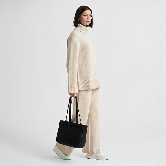 Внутреннее пространство сумки организовано с максимальной функциональностью: три просторных отделения позволяют удобно разместить все необходимые вещи, а пять карманов обеспечивают дополнительное место для мелочей, которые всегда должны быть под рукой. Закрывается на надежную молнию, что обеспечивает безопасность ваших вещей.