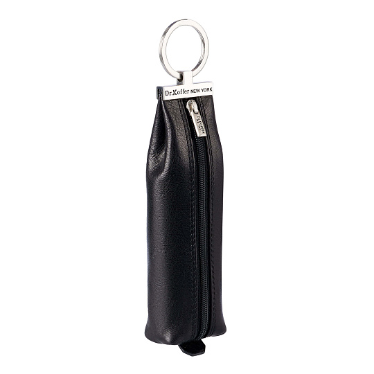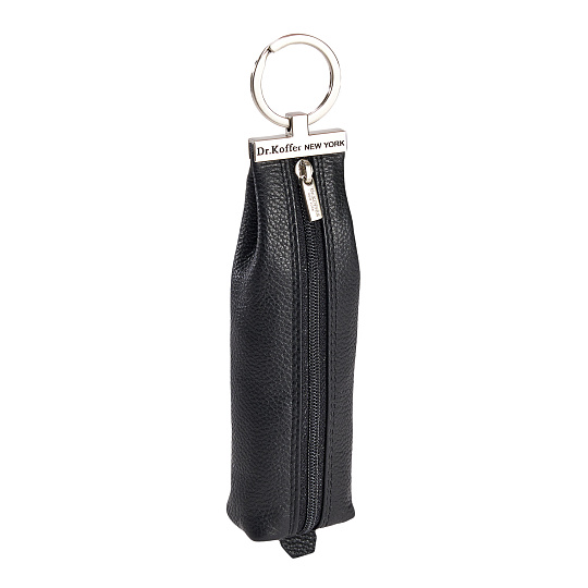 Большая ключница для нестандартных и длинных ключей. Благодаря удачно найденной форме вместит самую внушительную связку, не потеряв при этом ни капли в элегантности. Помимо внутреннего кольца с цепочкой для ключей удобно использовать и внешнее кольцо, за которое, кстати, ключницу можно подвешивать на крючки в прихожей. Модель сшита из классической кожи, внутренняя отделка из брендированной фирменной ткани. Вшитый снизу кожаный язычок помогает застегивать молнию. Продается в стильной подарочной коробке.