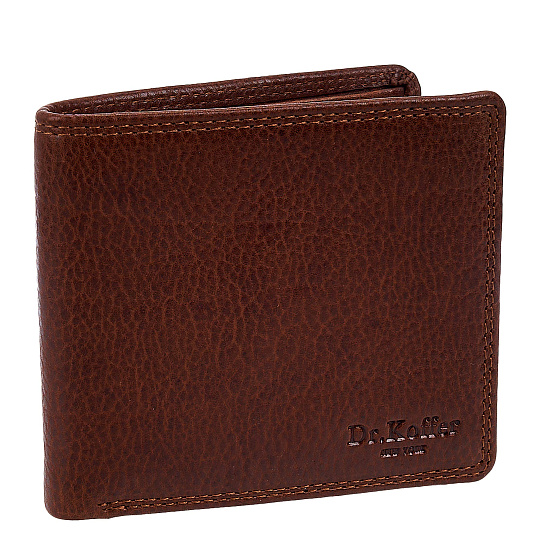 Компактный кожаный бумажник для мужчины от бренда Dr.Koffer – надёжный аксессуар в дизайнерском исполнении. Модель мужского кошелька bi-fold - одна из самых популярных благодаря двойному сложению и отсутствию лишних деталей. Наличные деньги, пластиковые карты, визитки, чеки, - всё это умещается в кожаном бумажнике, который в наполненном состоянии не потеряет форму.
