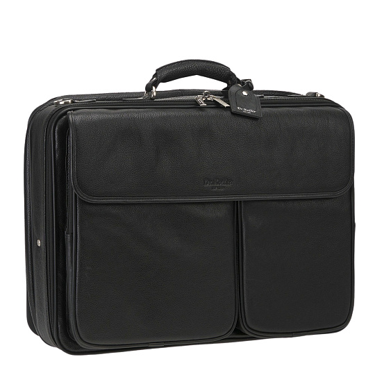 Супервариант для командировок, находка для тех, кто ценит комфорт. Очень удобное устройство всех отделений. В заднем отделении с портпледом – чехол для костюма с плечиками и огромный карман на молнии. Основное отделение открывается приятно широко, доступ в него абсолютно свободный. Для фиксации рубашек – элегантные ремни. Два передних накладных кармана – очень вместительные, надежно закрываются молниями. При полуоткрытых молниях карманы зафиксирует клапан на липучке. Ручка и крепления плечевого ремня посажены на металлический каркас.