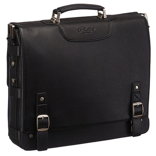 Грандиозный портфель. Примечателен высокой, вытянутой вверх, формой и нестандартными, стильными деталями. Съемный плечевой ремень эффектно крепится по бокам с помощью ременных застежек и кнопок. На обратной стороне портфеля, под козырьком на скрытых магнитах– большой просторный карман. Клапан портфеля – на язычковых защелках, скрытых под фальш-ремешками. Обратная сторона клапана из замши. В основном отделении – мягкий карман-перегородка, большой потайной карман и гнезда для мобильного, калькулятора, визиток, ручек.Максимальная длина плечевого ремня 150 см, ремень регулируется по длине.