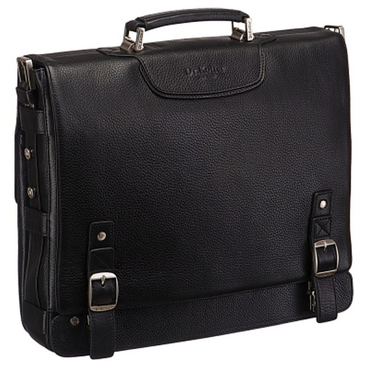 Грандиозный портфель. Примечателен высокой, вытянутой вверх, формой и нестандартными, стильными деталями. Съемный плечевой ремень эффектно крепится по бокам с помощью ременных застежек и кнопок. На обратной стороне портфеля, под козырьком на скрытых магнитах– большой просторный карман. Клапан портфеля – на язычковых защелках, скрытых под фальш-ремешками. Обратная сторона клапана из замши. В основном отделении – мягкий карман-перегородка, большой потайной карман и гнезда для мобильного, калькулятора, визиток, ручек.Максимальная длина плечевого ремня 150 см, ремень регулируется по длине.