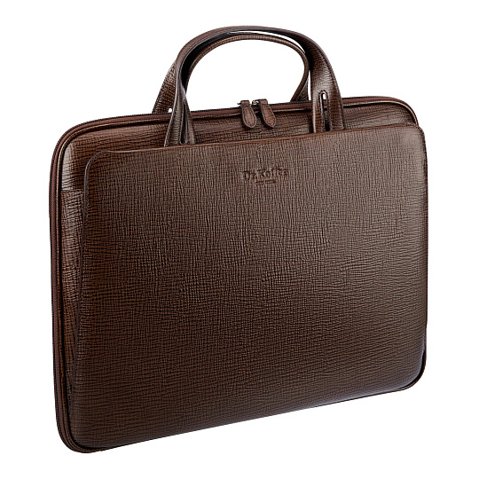 Изящная вариация на тему классической плоской папки для документов. Эффектные ручки с прорезями удобно ложатся в руку. Смягченные стенки намекают на готовность вместить iPad и другую компьютерную технику. На обеих сторонах устроены удобные наружные секции, закрывающиеся на скрытые магниты. Внутри секций остроумно спрятаны крепления съемного плечевого ремня. В одной из них расположен бизнес-блок с гнездами для телефона, визиток, петельками для ручек и брелоком на кнопке. В основном отделении большой карман на молнии.Максимальная длина плечевого ремня 150 см, ремень регулируется по длине.