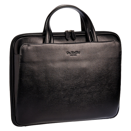 Изящная вариация на тему классической плоской папки для документов. Эффектные ручки с прорезями удобно ложатся в руку. Смягченные стенки намекают на готовность вместить iPad и другую компьютерную технику. На обеих сторонах устроены удобные наружные секции, закрывающиеся на скрытые магниты. Внутри секций остроумно спрятаны крепления съемного плечевого ремня. В одной из них расположен бизнес-блок с гнездами для телефона, визиток, петельками для ручек и брелоком на кнопке. В основном отделении большой карман на молнии.Максимальная длина плечевого ремня 150 см, ремень регулируется по длине.