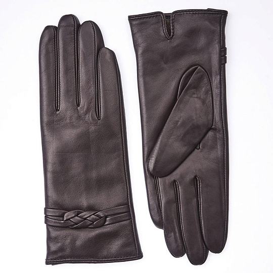 Теплая классическая пара - универсальный выбор на холодный сезон для  уверенной в себе женщины. Плетеный узор из тонких шнуров подчеркивает красоту запястья хозяйки. Пара полностью сшита из мягкой кожи с обработкой по технологии тачскрин, поэтому их можно не снимать, чтобы привычно пользоваться устройствами с сенсорными экранами. Дополнительно модель утеплена теплой шерстяной подкладкой. Продаются в фирменной подарочной коробке.