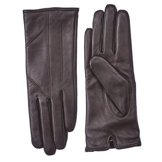 Перчатки с отличной посадкой на ладони. Декоративные швы играют роль вытачки, благодаря им эта пара плотно облегает руку и в тоже время имеет очень комфортную посадку. Перчатки полностью сшита из мягкой кожи с обработкой по технологии тачскрин, поэтому их можно не снимать, чтобы привычно пользоваться устройствами с сенсорными экранами. Дополнительно модель утеплена теплой шерстяной подкладкой. Продаются в фирменной подарочной коробке.