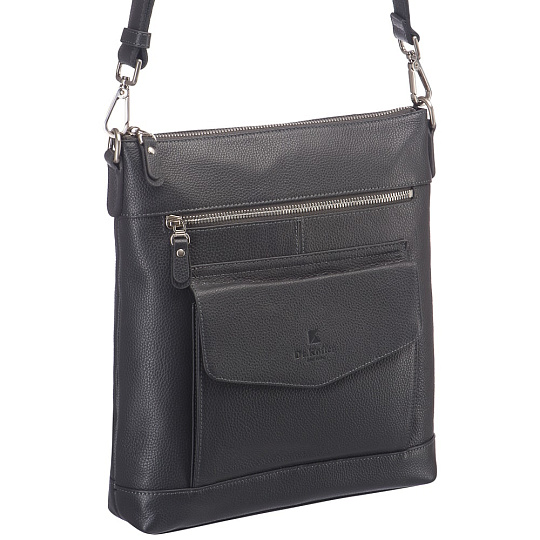 Сумка с удобным набором наружных карманов и дополнительной ручкой-хлястиком. Дополнительная ручка прилегает к обратной стороне и воспринимается как декоративный элемент. Наружные карманы, закрывающиеся на молнии, расположены на лицевой и обратной сторонах, еще один карман на лицевой стороне предназначен для быстрого доступа и закрывается на скрытый магнит. В основном отделении устроены карман на молнии для денег и документов и гнезда для смартфона и карточек-визиток. Плечевой ремень при желании можно снимать. Максимальная длина плечевого ремня 150 см, ремень регулируется по длине.