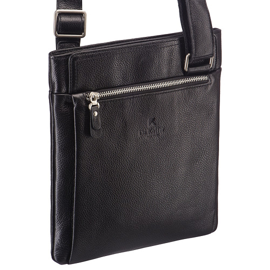 Эффектная сумка с карманом-невидимкой. За лицевым наружным карманом, который закрывается на молнию, расположен еще один незаметный карман, который фиксируется скрытым магнитом. Основное отделение закрывается на молнию, в нем устроены карман на молнии, кармашки для смартфона и карточек-визиток, две петельки для ручек. У модели удобное и красиво оформленное диагональное крепление плечевого ремня.