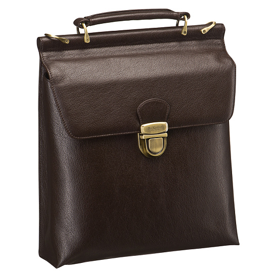 Подчеркнуто респектабельная модель: внутренняя сторона клапана выполнена из замши в цвет основной кожи, торцы саквояжной планки оформлены кожей, видимый участок внутренней стенки основного отделения до кармана на молнии отделан кожей. Фурнитура сатинированная, строчка аккуратная. Внутри планшета гнезда для телефона, карточек, петли для ручек-карандашей и карман на молнии. Наружный карман на обратной стороне также закрывается на молнию. Съемный плечевой ремень прилагается.