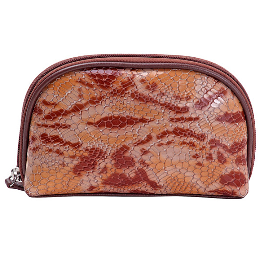 Компактная, плоская модель для тех, кто не любит “раздутые” косметички. В любой степени заполненности она сохранит элегантную форму и достойный вид. Благодаря тканевым складкам по бокам модель достаточно широко открывается. Внутри – жесткий карман-перегородка для хрупких предметов: пудры, сухих теней, кисточек. На одной из внутренних стенок – потайной карман, на другой – удобной зеркальце в кожаной оправе на кнопке. Аккуратная строчка выполнена из нитей цвета графита – не вызывающе, но заметно. Кожа мягкая, роскошная.