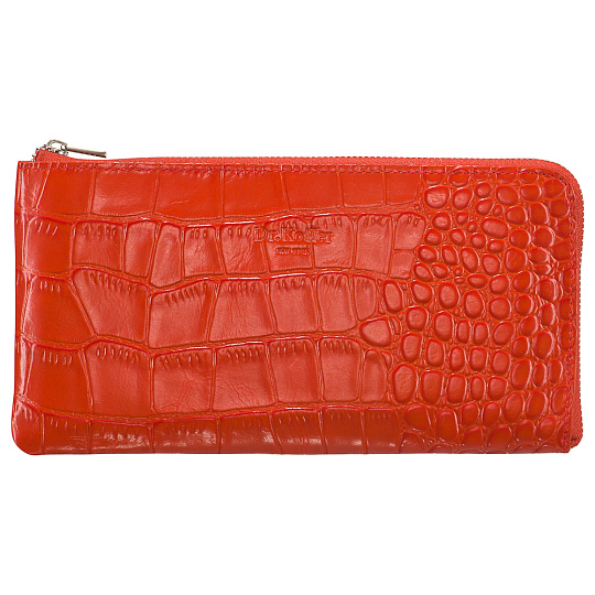 Симпатичный аксессуар с легким намеком на сумочку-клатч. Молния вшита уголком, благодаря чему модель открывается очень широко, и, в результате, находящимися в ней отделениями для купюр и кармашками для карточек очень удобно манипулировать – никакого ощущения скованности для пальцев! Для монет удобно использовать карман на молнии, расположенный на обратной стороне модели.