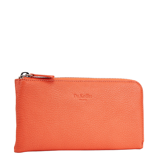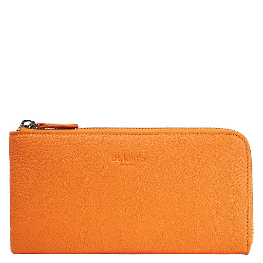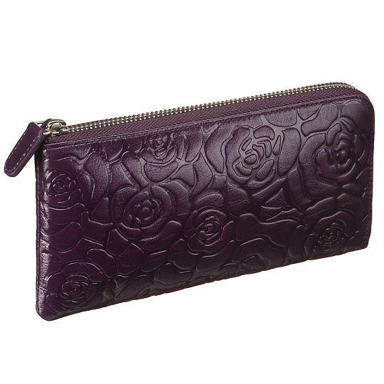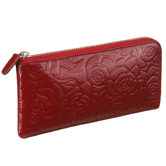 Портмоне современного формата, ориентированное на популярность банковских и клиентских карт. Для карточек имеется 14 кармашков, устроенных на трех внутренних сторонах. Кармашки удобные, карточки, расположенные в них, можно разглядеть по видимой верхней части. Для купюр хорошо использовать как боковые секции, так и карман-перегородку. Молния основного отделения допускает и размещение монет. Модель открывается широко, молния проложена на две стороны. Тисненая кожи невероятно приятна для рук. Продается в подарочной коробке.