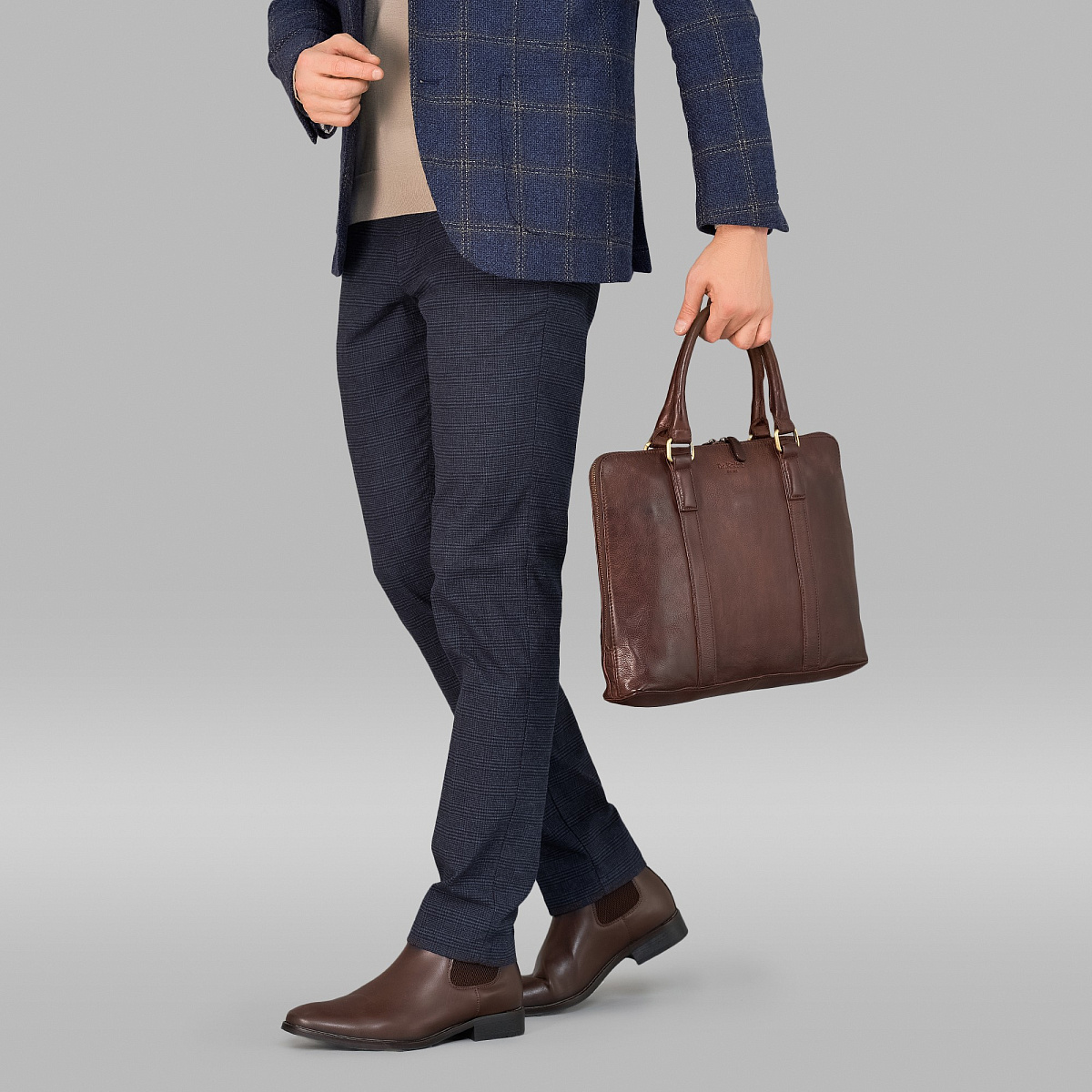 Деловая сумка Dr.Koffer из натуральной кожи темно-коричневая