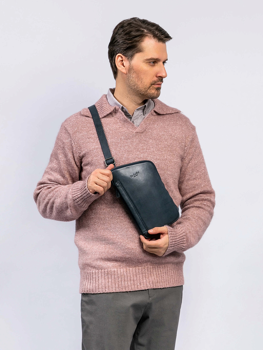 Сумка на пояс Dr. Koffer из натуральной кожи синяя