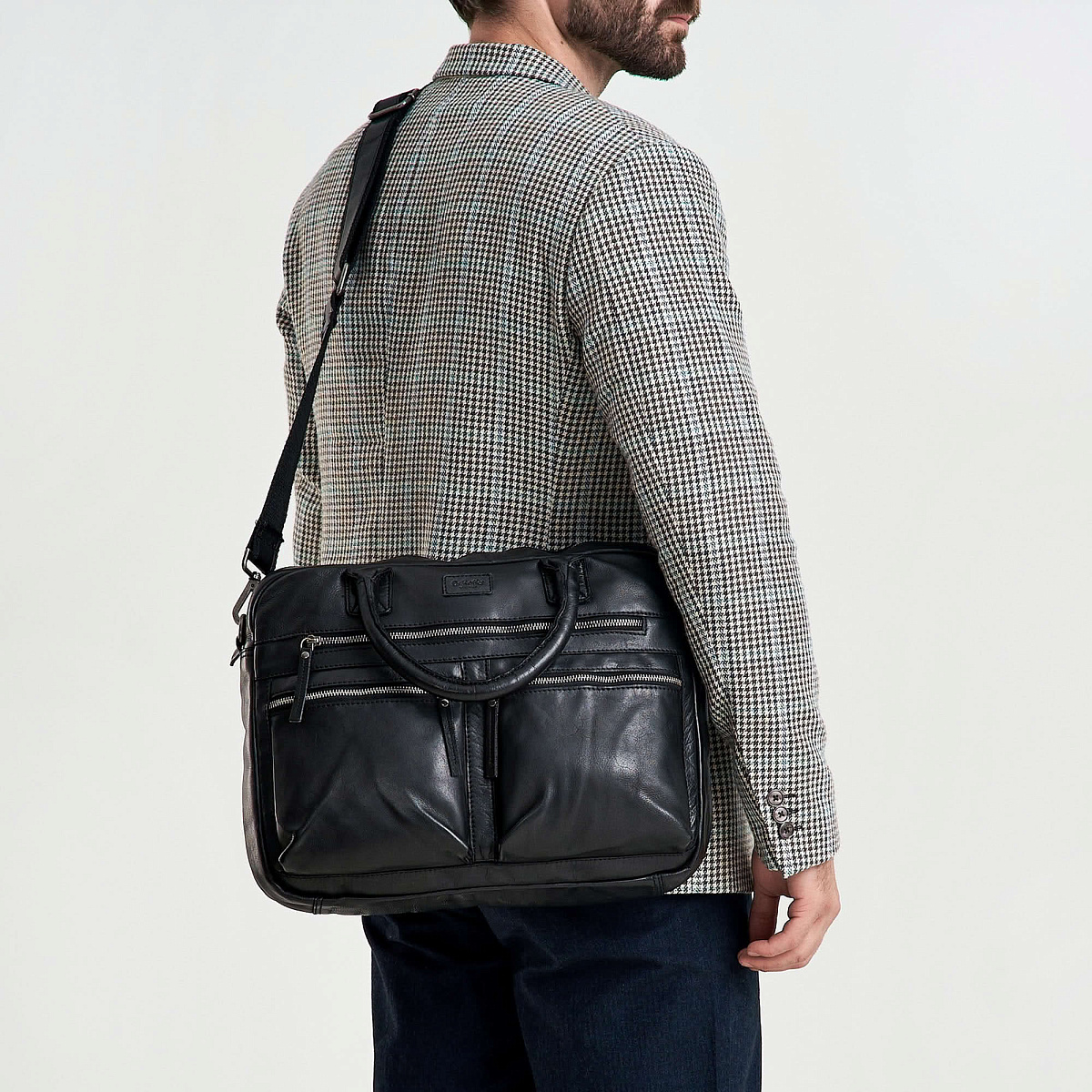 Деловая сумка Dr.Koffer из натуральной кожи черная