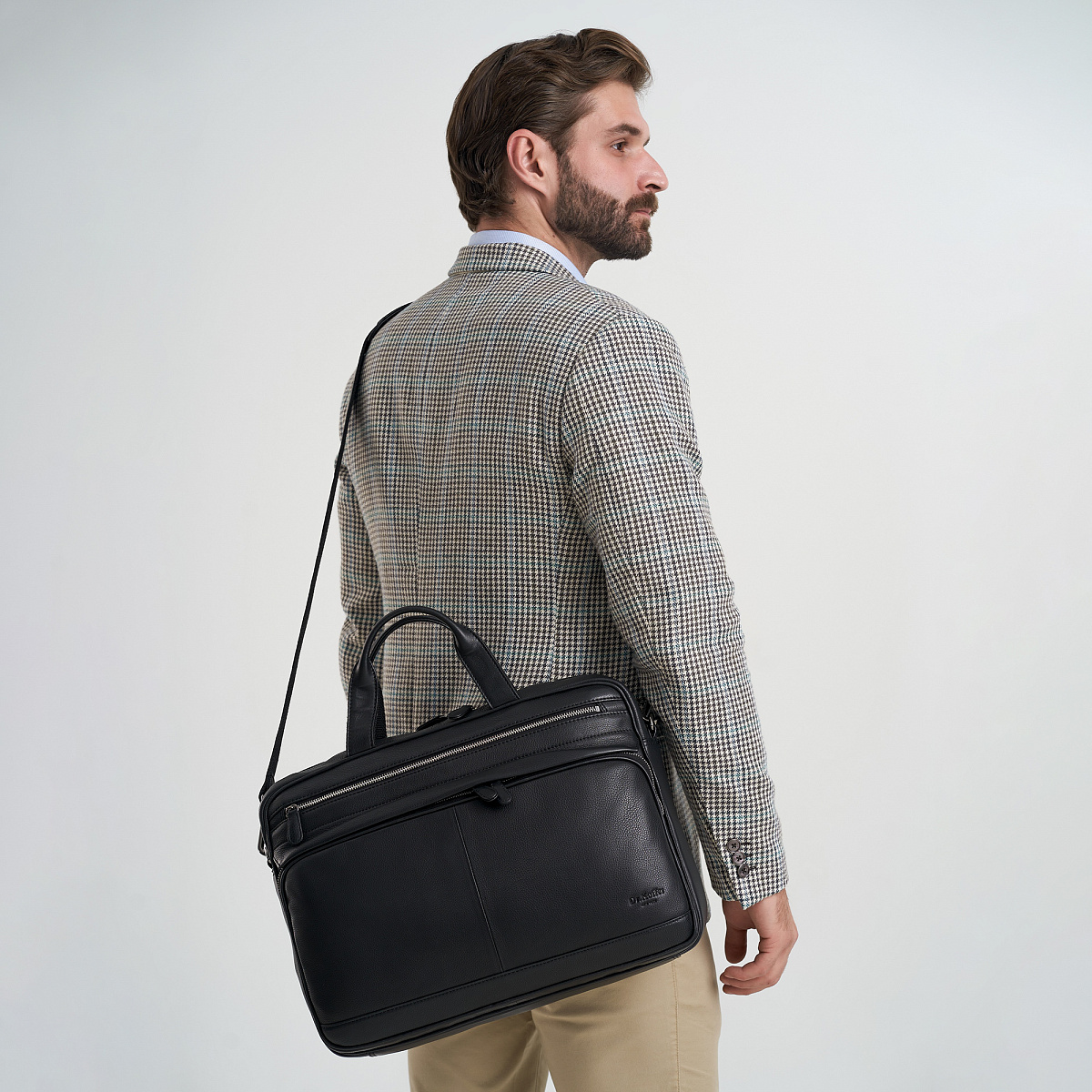 Деловая сумка Dr.Koffer из натуральной кожи черная