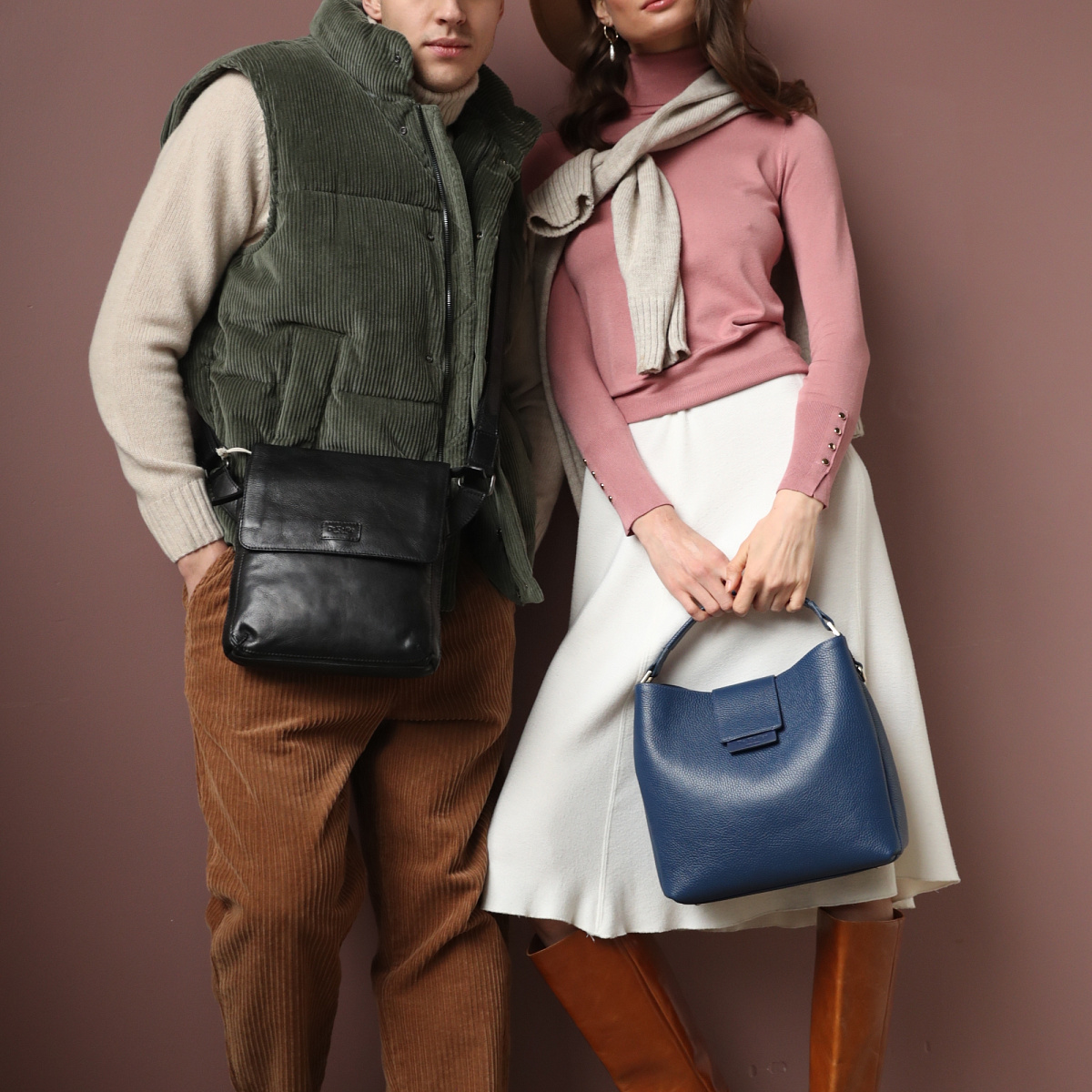 Сумка через плечо Dr.Koffer из натуральной кожи синяя
