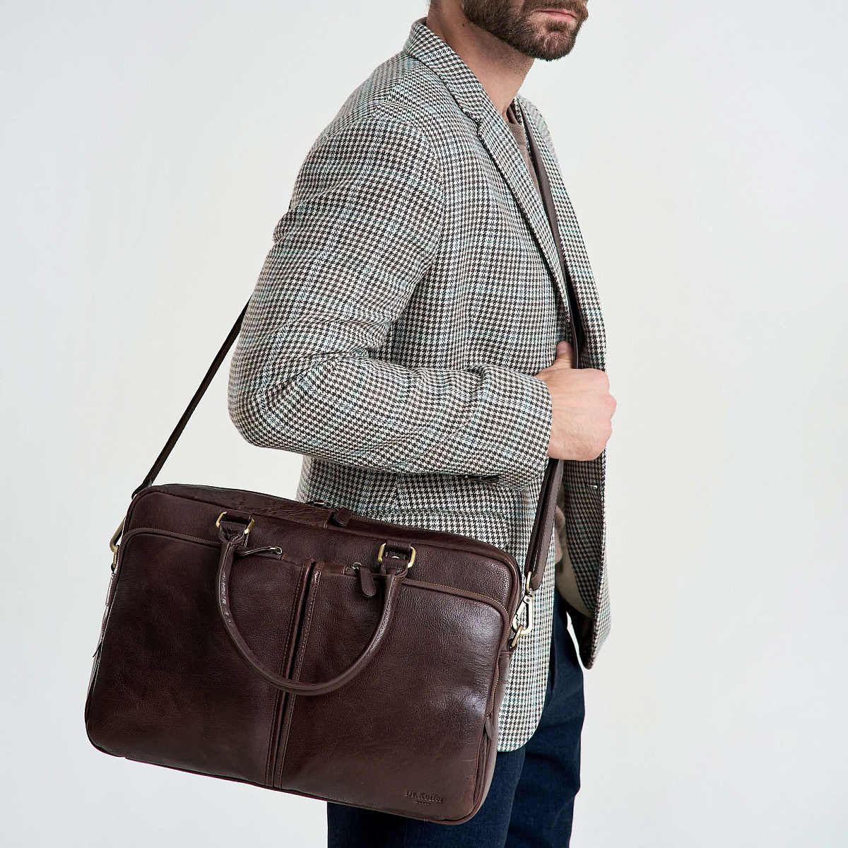 Деловая сумка Dr.Koffer из натуральной кожи темно-коричневая