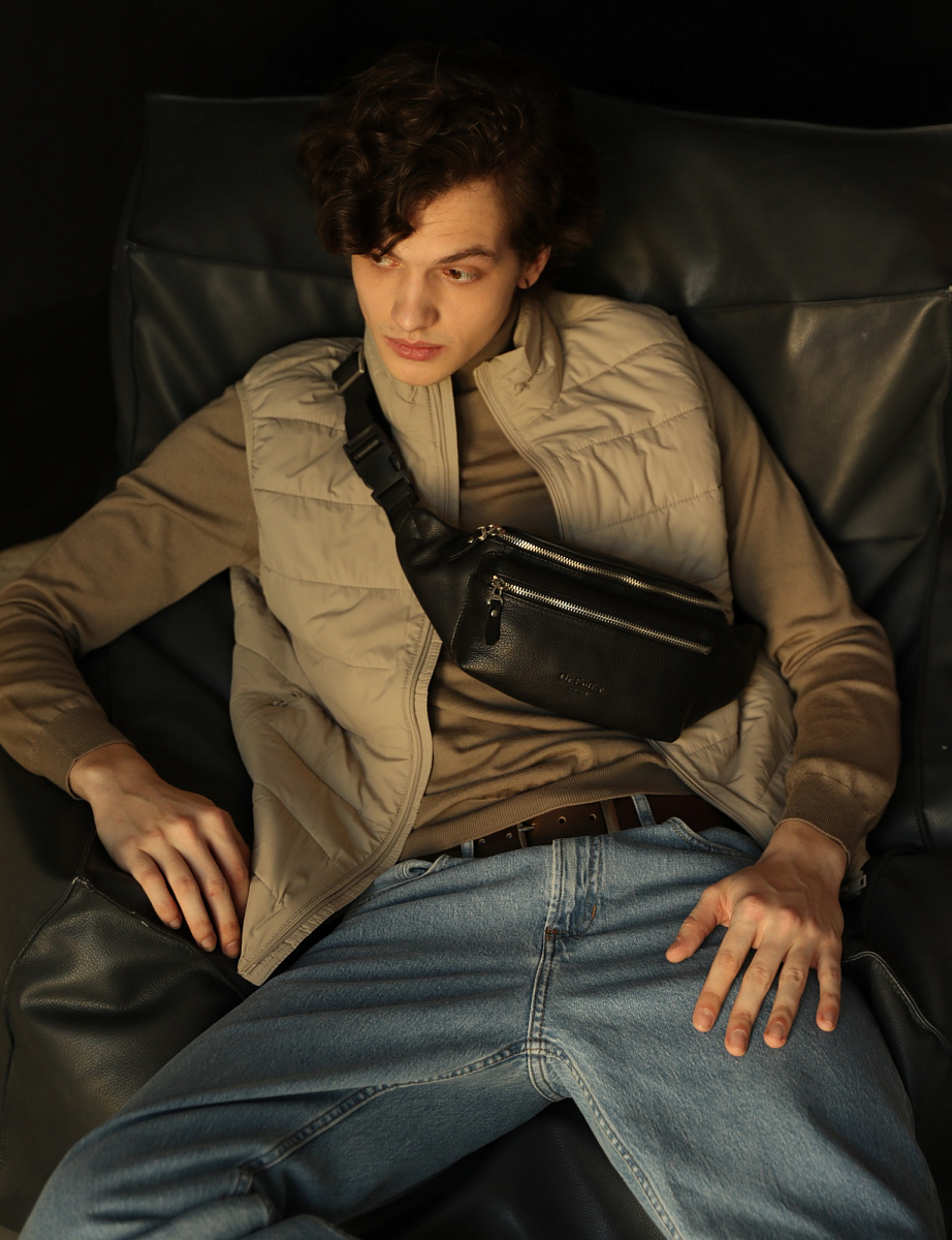 Сумка на пояс Dr. Koffer из натуральной кожи черная